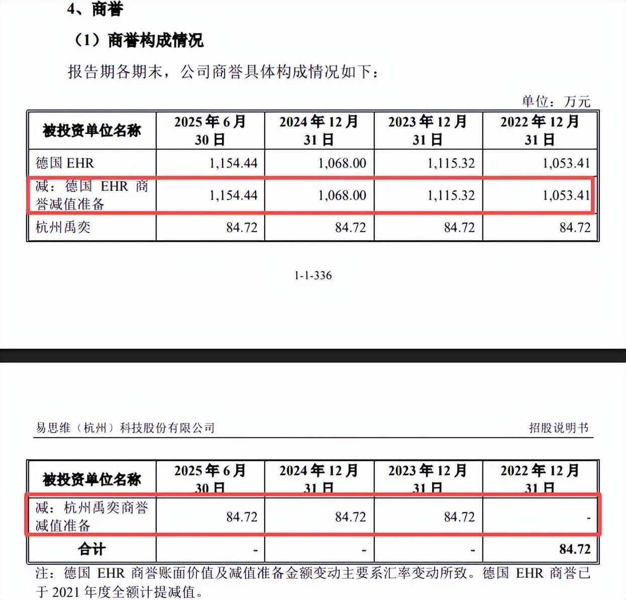 两笔收购形成的商誉均已经全额计提。2019年2月至2020年1月,易思维通过设立香港易思维、德国RM1920、德国RM1921等多层路径完成对德国EHR的控股权收购。