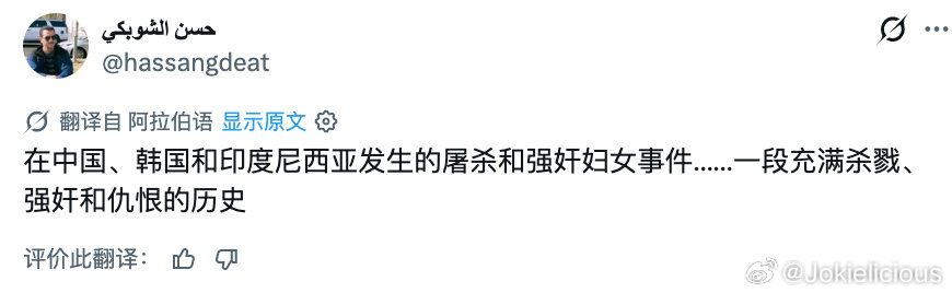 这就给日本网右打造了一个完美的“自嗨温室”。他们可以躲在自己的语言圈子里,天天给二战军国主义翻案、否认南京大屠杀、美化侵略战争,把X当成朋友圈来发。反正外面的人也看不懂,也没什么人看。除了本来就和日本有血海深仇的中韩网民,几乎不会有人注意到日本网右那些逆天的暴论。