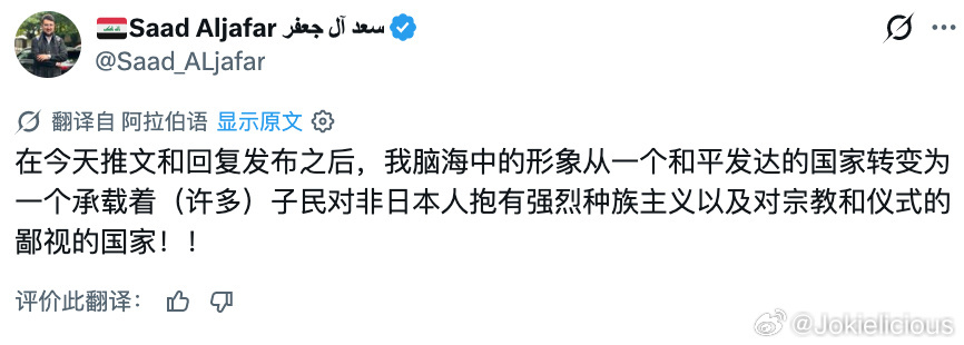 那些在网上气急败坏的日本网右,与其把锅甩给自动翻译,甩给AI,甩给马斯克,还不如好好想想:为什么你们日本人发的那些话,一旦被世界上其他国家的人看懂了,你们就成了全网公敌呢?